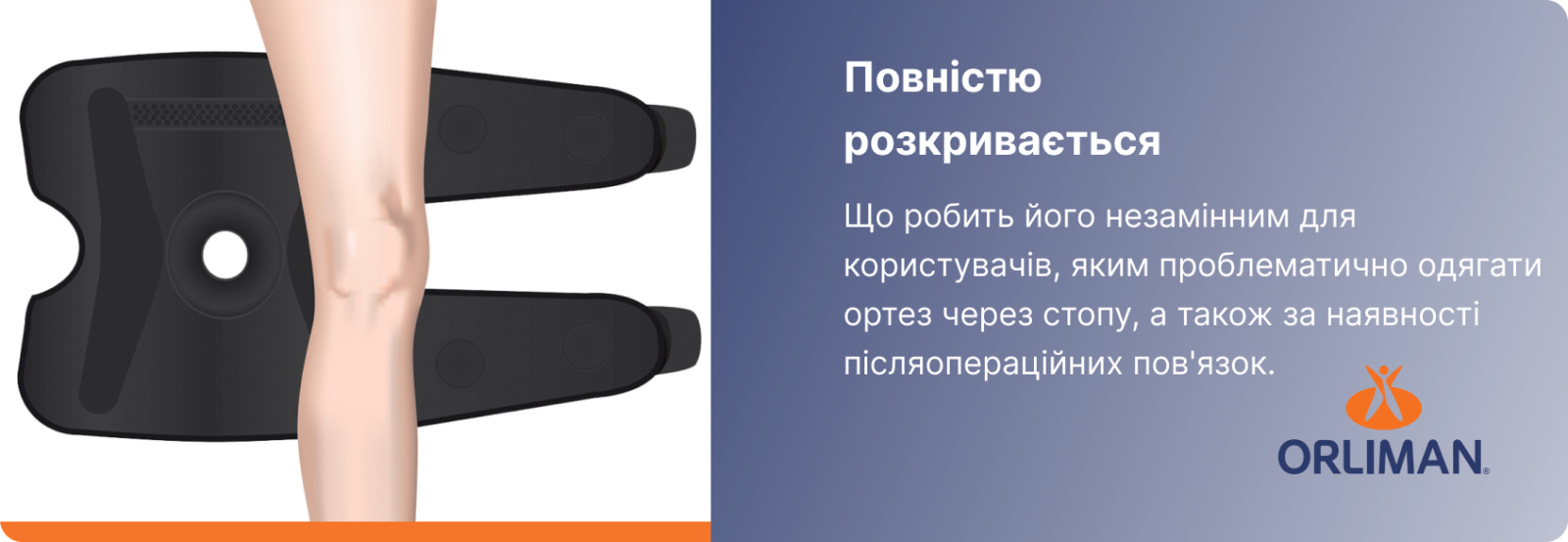 3-Tex роз'ємний наколінник з бічними вставками та поліцентричним шарніром Orliman 7120