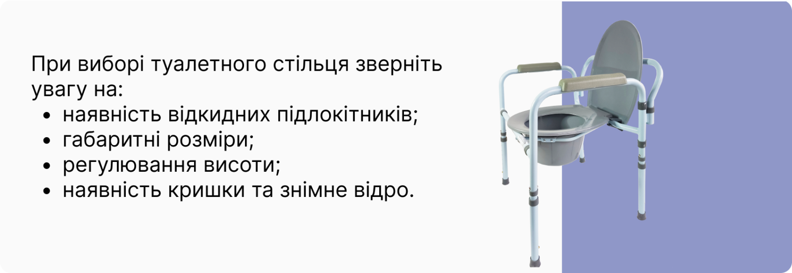 Тип санітарного пристосуванняКрісло-туалет