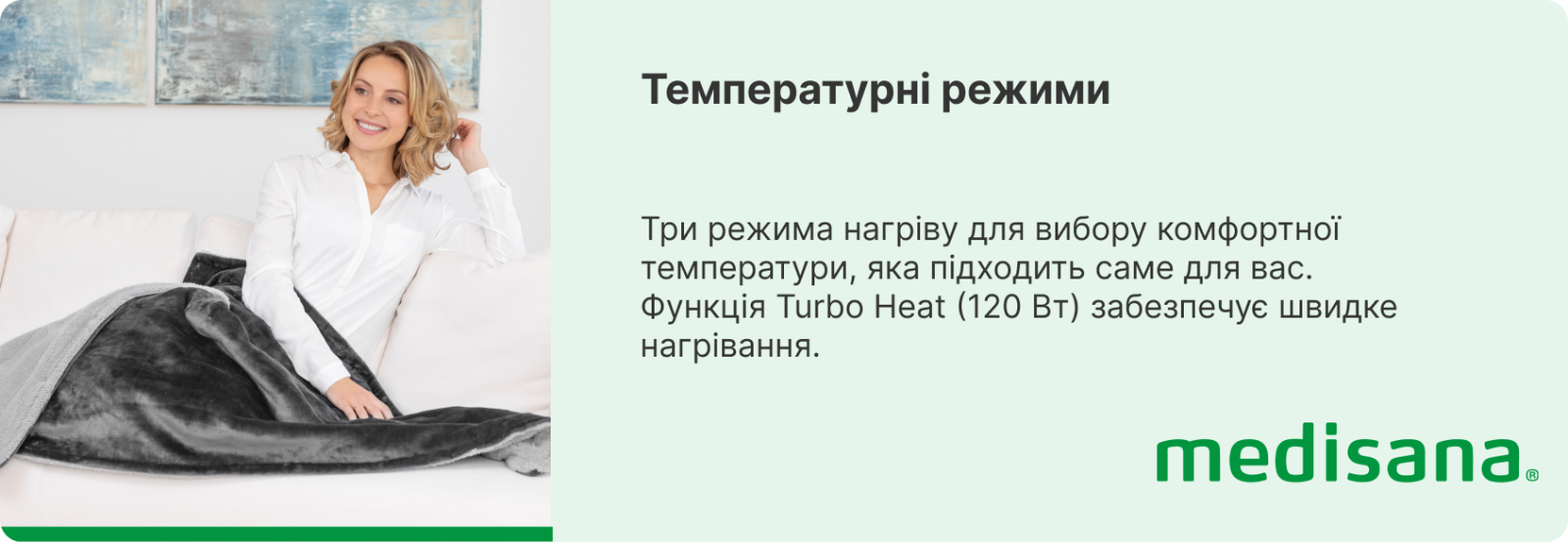 Електроковдра від Medisana забезпечить комфортний сон в холодну пору року та рівномірно прогріє ліжко перед сном. Завдяки швидкому нагріванню електроковдра - безпечний та швидкий спосіб зігрітися, який підходить для людей з чутливою шкірою або проблемами кровообігу.
