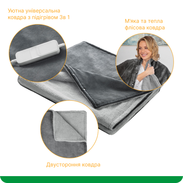 Електроковдра забезпечує комфортний рівень тепла для кожного. Використовуйте її для зручного сну у будь-яку пору року. Завдяки своїй універсальності та портативності ковдру зручно брати з собою у подорож.