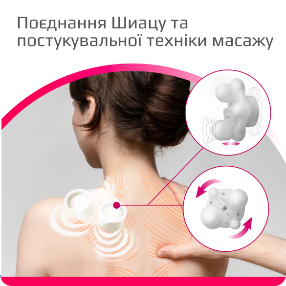 Підходить для комфортного масажу шиї, попереку, стоп, плечей, литкових м'язів, стегон та сідниць. В основі роботи масажера для тіла MED-440 лежить комбінація технік Шиацу та тапінг-масажу.